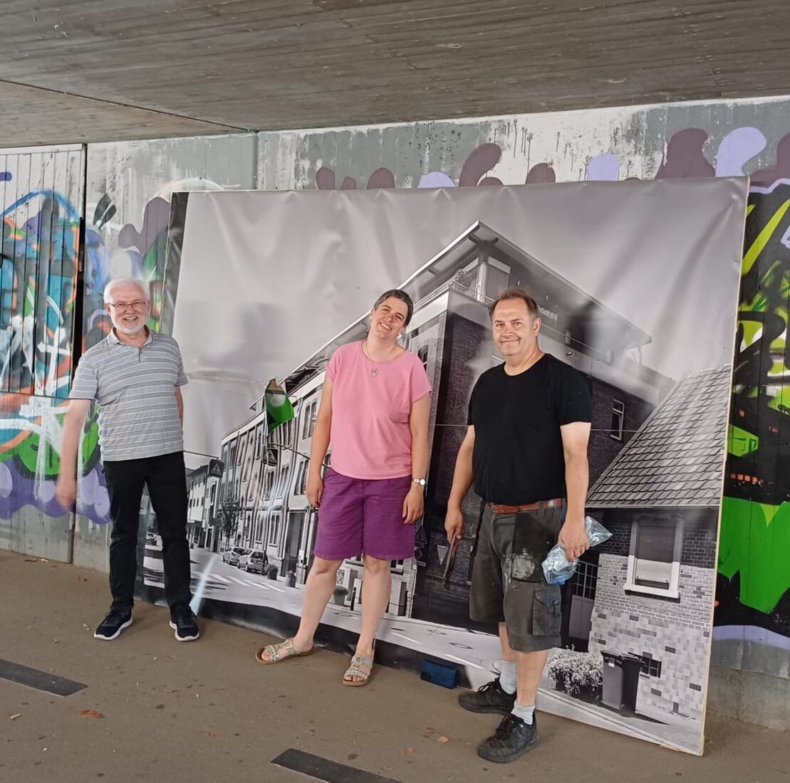 Es ging einfach nicht mehr. Unsere schönen B3-Unterführungsplakate waren nach etwas mehr als einem Jahr einfach hinüber. Nicht durch Verwitterung, sondern durch Vandalismus. Von Anfang an hatten wir Probleme mit Schmierereien auf unseren Leinwänden. Die konnten zwar mit Reinigungsbenzin entfernt werden, aber bei jedes Mal schrubbten wir auch unfreiwillig die Farbe von den Bildern mit herunter. Als dann irgendwann die Plakate mit Cutter-Messer traktiert wurden war es dann aber vorbei. Schon länger hatten wir überlegt, was nun zu tun sei und zunächst noch Rettungsversuche unternommen, aber selbst Klebeversuche blieben erfolglos. Am Ende stand der Entschluss: Die Plakate müssen abgenommen werden. So hatten sich einige SPDler am Donnerstag Nachmittag in der B3-Unterführung getroffen und sowohl die Leinwände selbst als auch die Haken und Schrauben in den Wänden entfernt. Ein bisschen Wehmut schwang da durchaus mit, denn in der Aktion steckte viel Herzblut - und Zeit. Rüdiger Kanzler hatte nämlich die Holzunterkonstruktionen selbst gezimmert, was gleich mehrere Feierabende in Anspruch nahm. Und die Leinwände selbst dann auf die Latten zu tackern war eine "Fummelarbeit". Alles umsonst? Natürlich nicht! Wir haben tolles Feedback bekommen von den Hirschbergerinnen und Hirschbergern die sich sehr über den Lichtblick in der ansonsten vollkommen vollgesprayten Unterführung gefreut hatten und nun auch viele Kommentare, die allesamt mit "Schade!" begannen. Aber die Geschichte ist noch nicht zu Ende. Denn die Unterführung selbst wird bald renoviert. Sie bekommt einen neuen Anstrich sowie eine neue Beleuchtung. Und weil die Idee mit den Bildern den Menschen so gefallen hat tüfteln wir an einem Nachfolgekonzept - dieses Mal mit langlebigen Materialien. Wir haben uns sehr gefreut, mithelfen zu können, Hirschberg für alle Einwohnenden ein bisschen schöner gemacht zu haben.